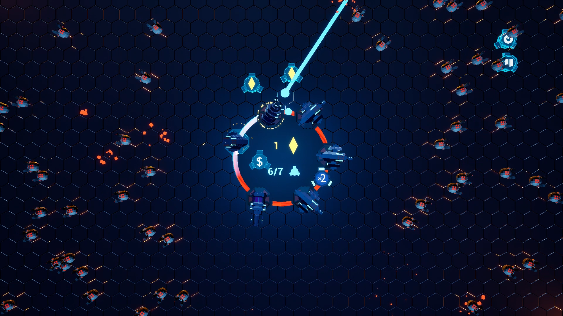 Manage your units on the Loop and choose between ressources or defense, and arrange them to create a deadly melody.